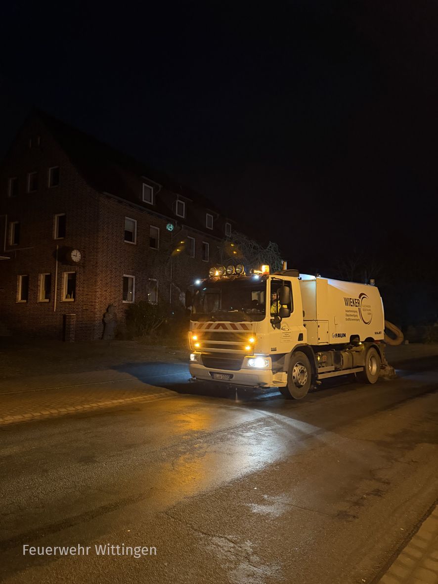 Weitere Maßnahmen war die Batterie abzuklemmen und die Straße zu reinigen.