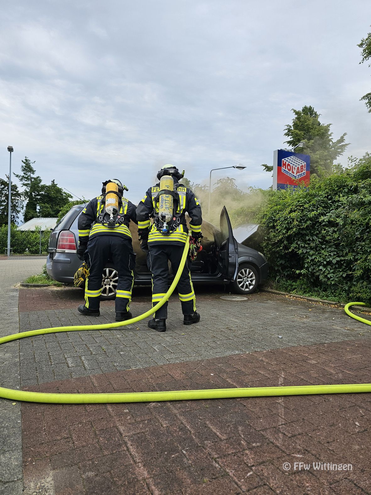 Nur den schnellen eingreifen der Besitzer, die das brennende Fahrzeug mittels eines Teleskopladers von der Tankstelle weggezogen haben, konnte Schlimmeres verhindert werden.