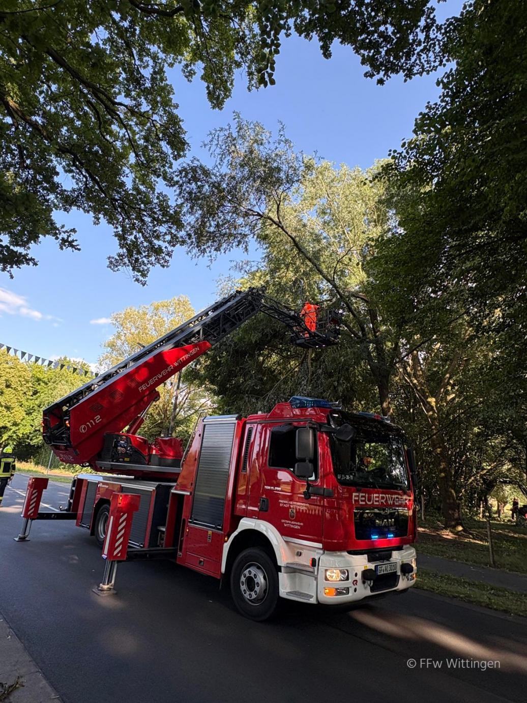 Technische Hilfeleistung Nachforderung Drehleiter Ast in 5 Meter Höhe |