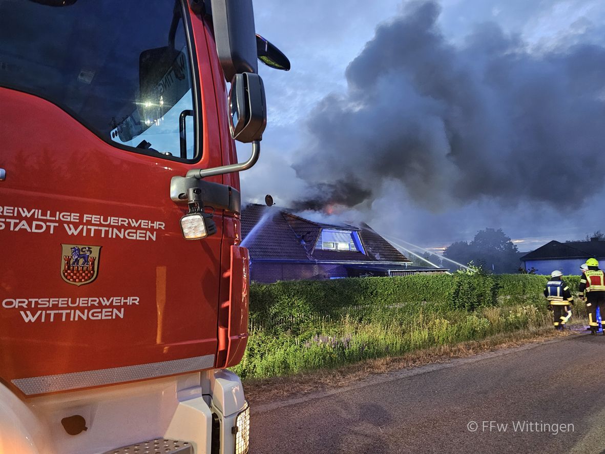 *Knesebeck, 14. September 2025* - In den frühen Morgenstunden des heutigen Sonntags kam es im Windmühlenweg in Knesebeck zu einem Dachstuhlbrand eines leerstehenden Einfamilienhauses. Gegen 03:30 Uhr meldeten mehrere aufmerksame Anrufer das Feuer der Einsatzleitstelle, welche Alarm für die Feuerwehr auslöste.