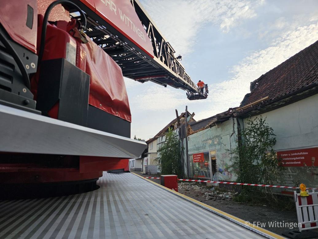 Die Nachlöscharbeiten dauerten bis in die frühen Morgenstunden an. Gegen 6:30 Uhr konnte Feuer aus gemeldet und mit Rückbaumaßnahmen begonnen werden. Der Bereitschaftsdienst der feuerwehrtechnischen Zentrale tauschte vor Ort verbrauchtes Schlauchmaterial, um die Einsatzbereitschaft der eingesetzten Feuerwehr wieder sicherzustellen. Die Feuerwehr Knesebeck verbleibt zur Brandwache vorerst weiter an der Einsatzstelle.