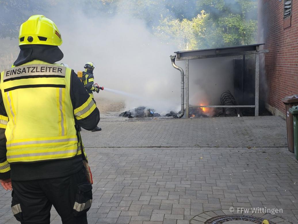 Noch auf Anfahrt meldete die Feuerwehr Erpensen, dass das Feuer bereits gelöscht wurde. Vor Ort war die Feuerwehr Erpensen gerade mit Nachlöscharbeiten in Gange.