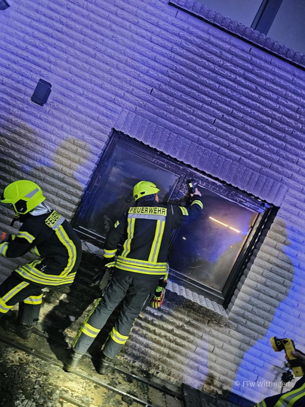 Daraufhin wurde ein umfassender Löschangriff von außen über die Drehleiter der Ortsfeuerwehr Wittingen sowie mit mehreren Trupps am Boden eingeleitet. Die Löschmaßnahmen wurden aufgrund des Brandrauches unter schwerem Atemschutz durchgeführt. Bereits rund eine Stunde nach Einsatzbeginn konnte das Feuer unter Kontrolle gebracht werden. Es folgten umfangreiche Nachlöscharbeiten, weiterhin ausschließlich im Außenangriff.