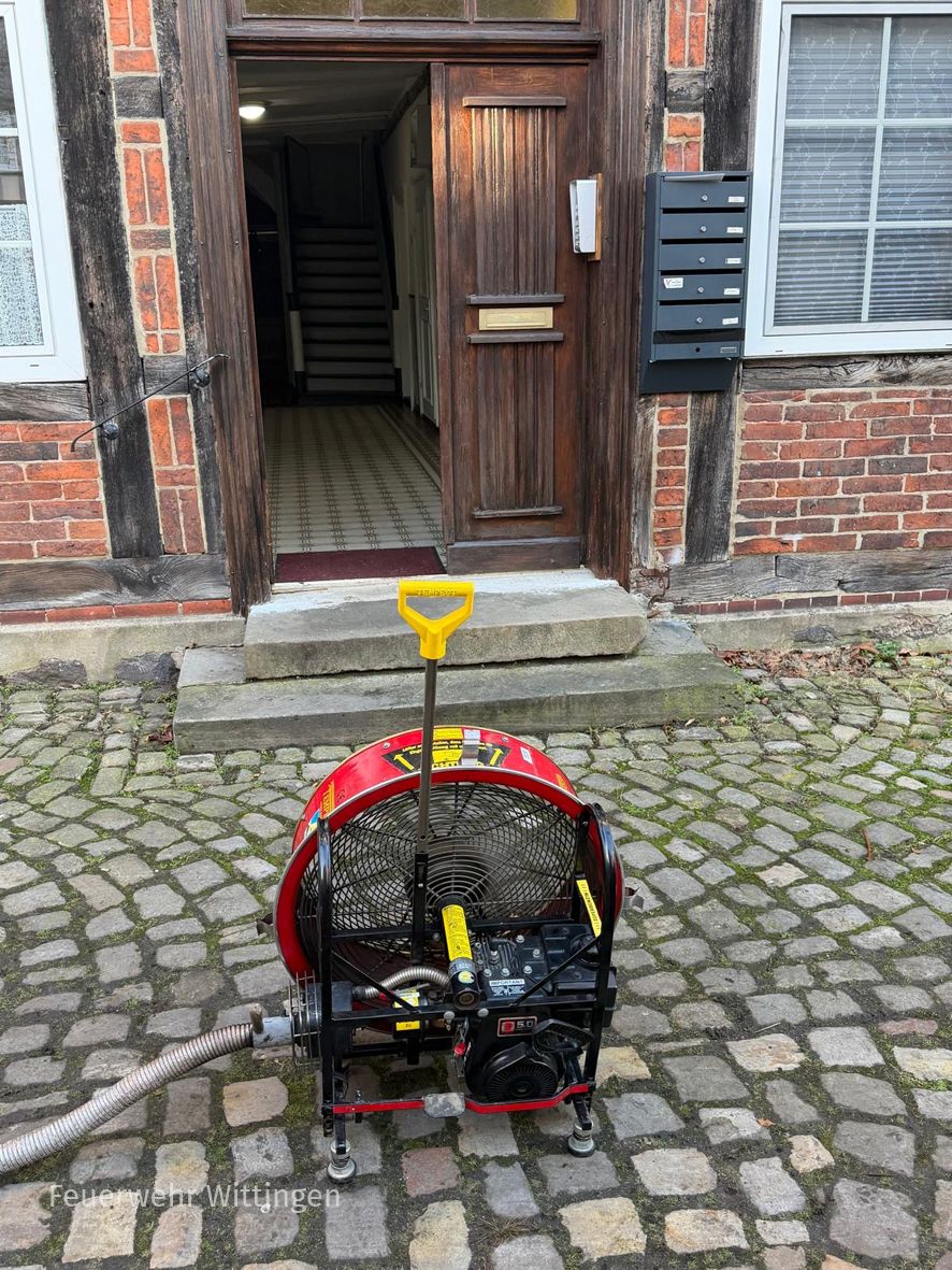 Ursache war ein brennender Wasserkocher auf einer Herdplatte. Dieser konnte schnell abgelöscht werden. Als weitere Maßnahme belüfteten wir die Wohnung mit dem Überdruckbelüfter.
