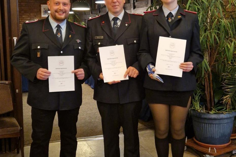 Befördert zur Feuerwehrfrau wurde Bente Thyra Metzner, Pascal Gumpert und Dominik wurden zum Hauptfeuerwehr befördert. Zum Löschmeister wurden Kathrin Gose und Lukas Heitsch befördert.