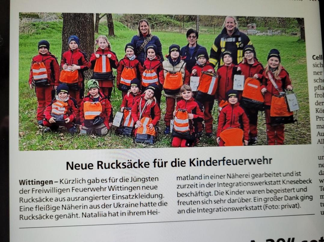 Diese hat das Betreuer-Team von der Integrationswerkstatt in Knesebeck nähen lassen. Die Rücksäcke mit kleinen Leckereien wurden vom Feuerwehrosterhasen versteckt und wurden beim Osterfeuer von den Kindern gesucht und gefunden.