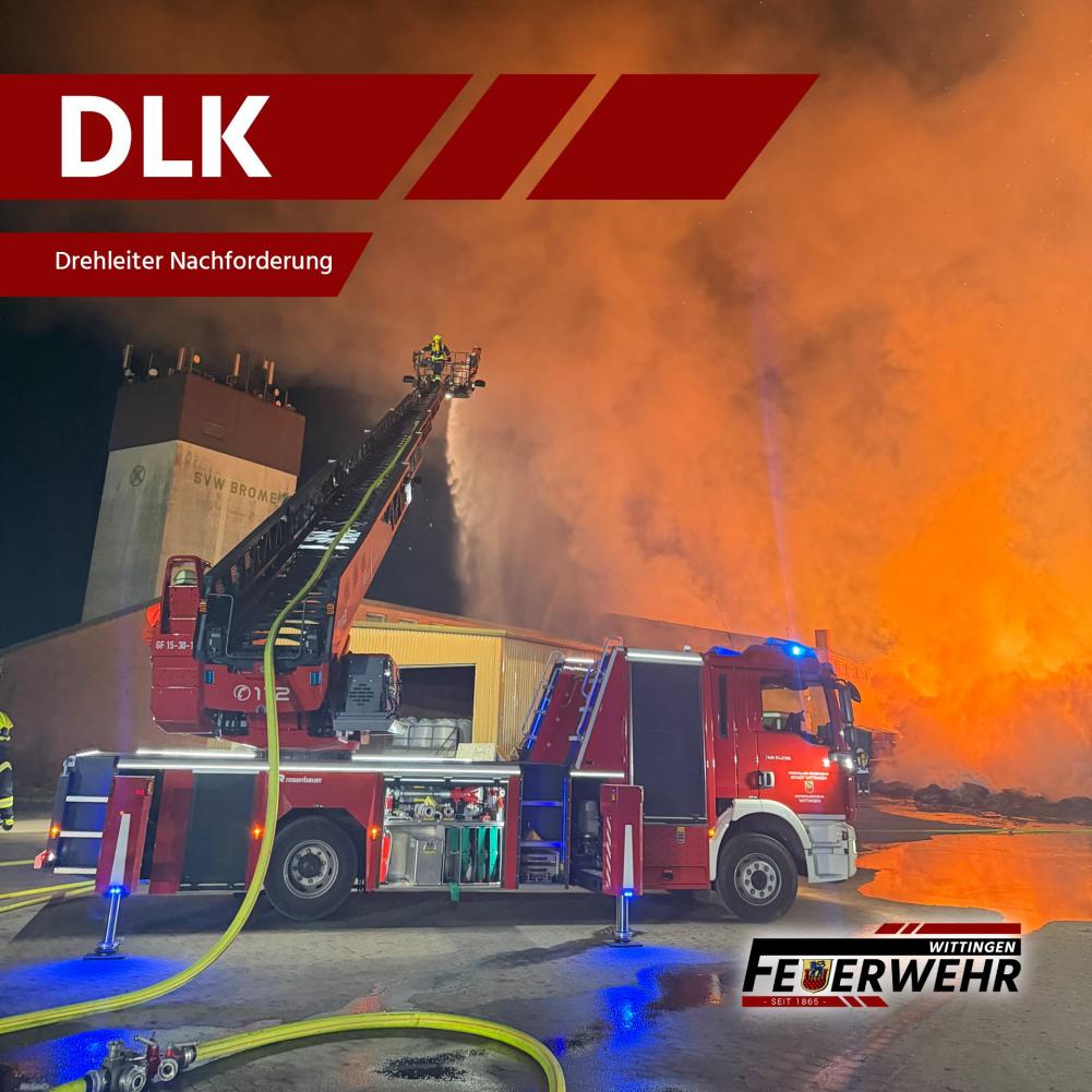 Zur Brandbekämpfung von oben wurde die Drehleiter aus Wittingen alarmiert. Aufgrund der Größe des Gebäudekomplexes kam zusätzlich der Teleskopmast der Werkfeuerwehr des Volkswagen Werk Wolfsburg zum Einsatz, um auch die gegenüberliegende Gebäudeseite gezielt von oben bekämpfen zu können.