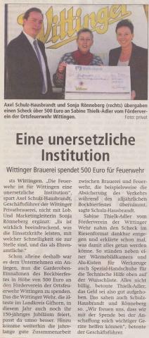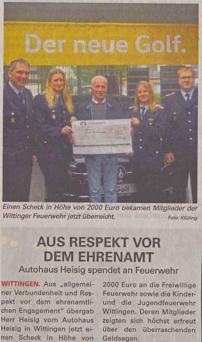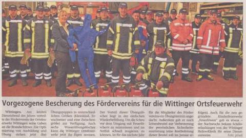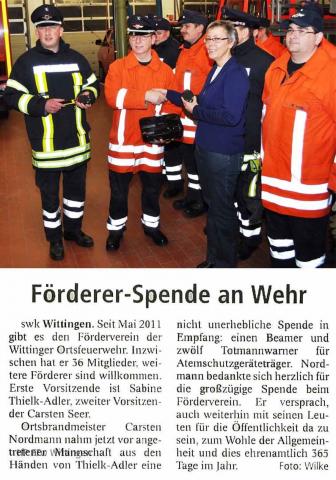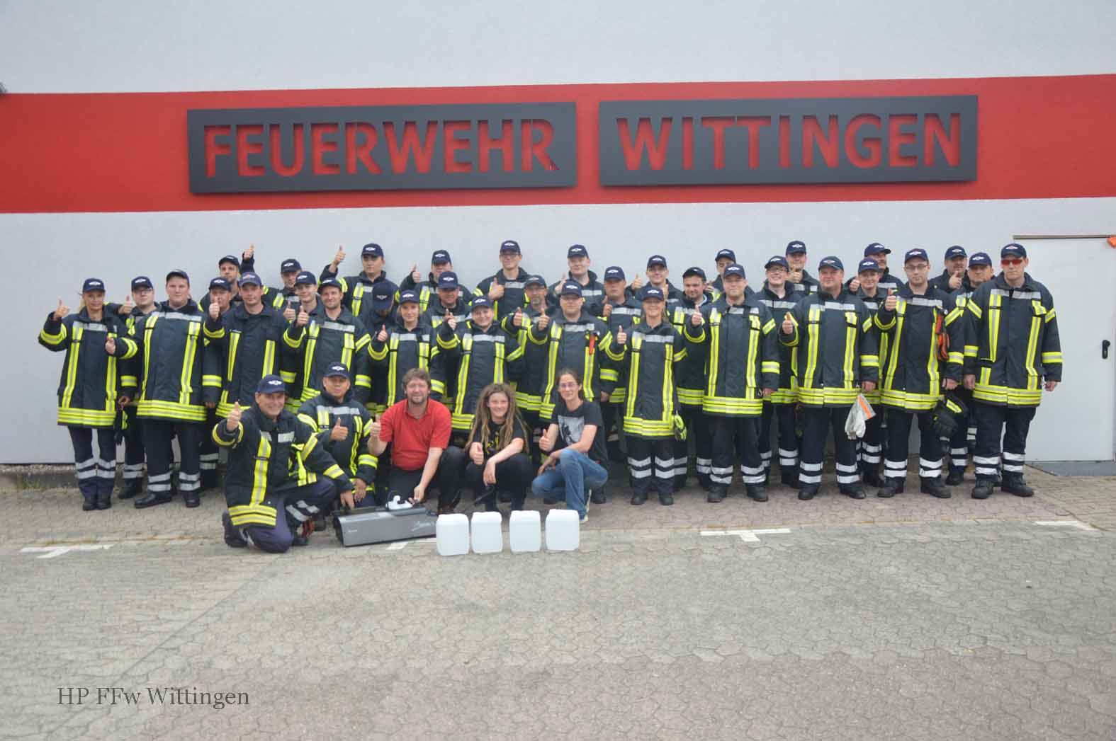 Auf eine großzügige Spende konnte sich der Förderverein der Freiwilligen Feuerwehr Wittingen freuen. Maik Nabakowski von NABA-COLOR spendete eine leistungsstarke Nebelmaschine samt 5 Kanister Nebelmittel. Die Idee der Spende ist von Nabakowski bei der Übung im Wittinger Hafen –das IK berichtete- entstanden dort wurde eine vergleichbare, allerdings geliehene, Nebelmaschine eingesetzt. Mit dieser neuen Nebelmaschine lassen sich innerhalb kürzester Zeit auch in großen Gebäuden Sichtweiten unter 50 Zentimeter zu Übungszwecken darstellen. Der Förderverein und die Feuerwehr Wittingen bedanken sich herzlichst auch für das lackieren des Werbeschildes FEUERWEHR WITTINGEN (im Bild oben) das Nabakowski bereits in 2015 durchführte.